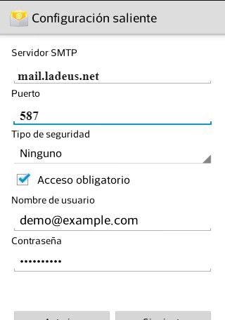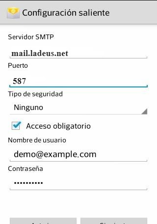 Ahora configuramos el servidor de salida SMTP y el puerto