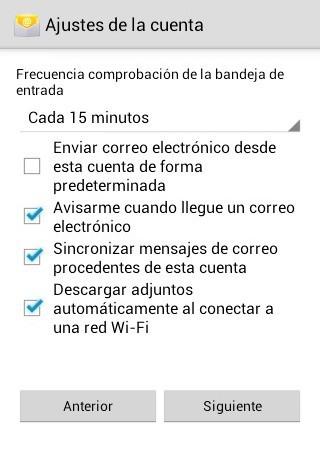 Una vez configurada la cuenta de correo, configuramos las siguientes opciones que pueden variar según nuestras preferencias.