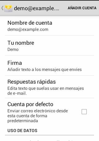 Vemos un listado de las cuentas de correo que tenemos configuradas en nuestro dispositivo.