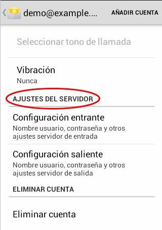 Si marcamos una de las opciones del apartado "Ajustes del servidor" modificamos los parámetros de los servidores de entrada y de salida. Pulsamos sobre "Configuración entrante" para poder ver y modificar la configuración.