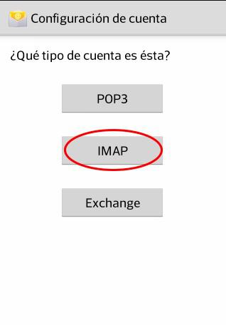 Debemos escoger el tipo de cuenta. Seleccionamos el que consideramos adecuado. En este tutorial configuramos IMAP.