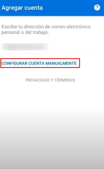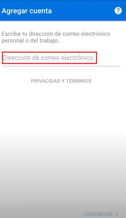 En la pantalla «Agregar cuenta», escribir la dirección de mail que queremos agregar y hacer click en «Continuar».