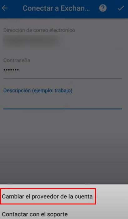 Hacer click en «Cambiar el proveedor de la cuenta».