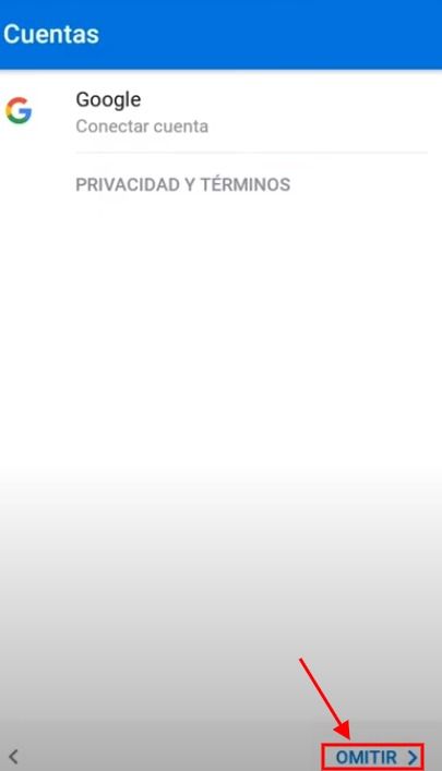 En la pantalla «Cuentas», hacer click en «Omitir».