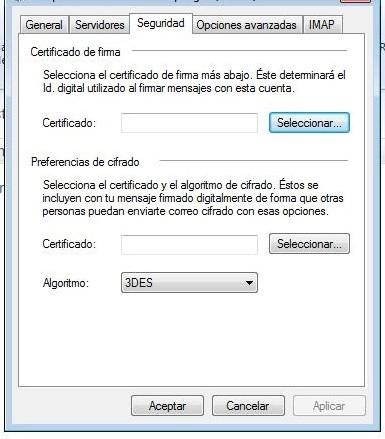 En Seguridad podemos editar los campos correspondientes a Certificado de firma y Preferencias de cifrado.