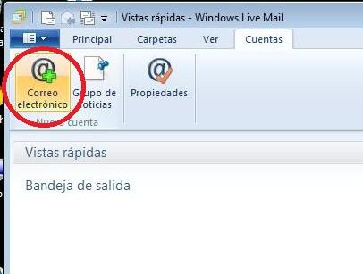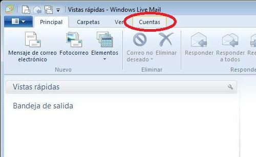 Iniciamos Windows Live Mail y pulsamos "Cuentas".